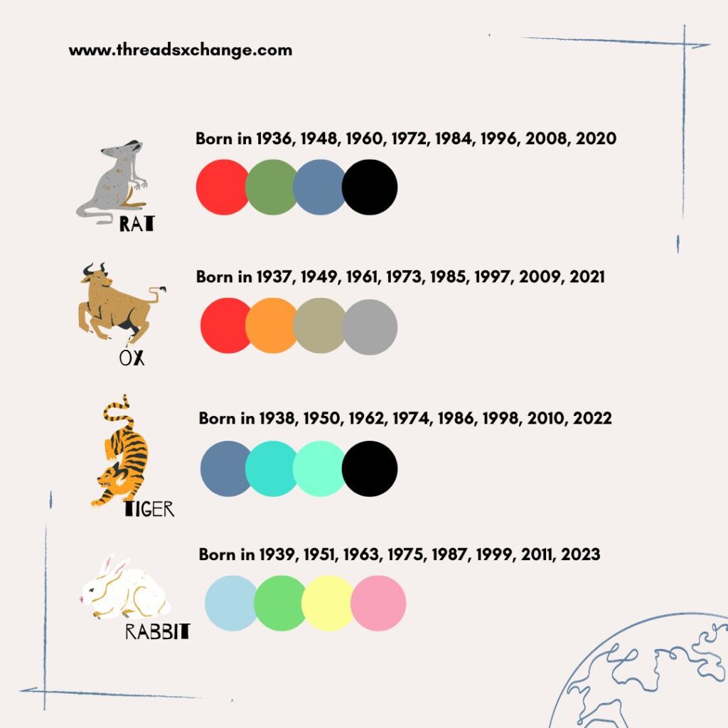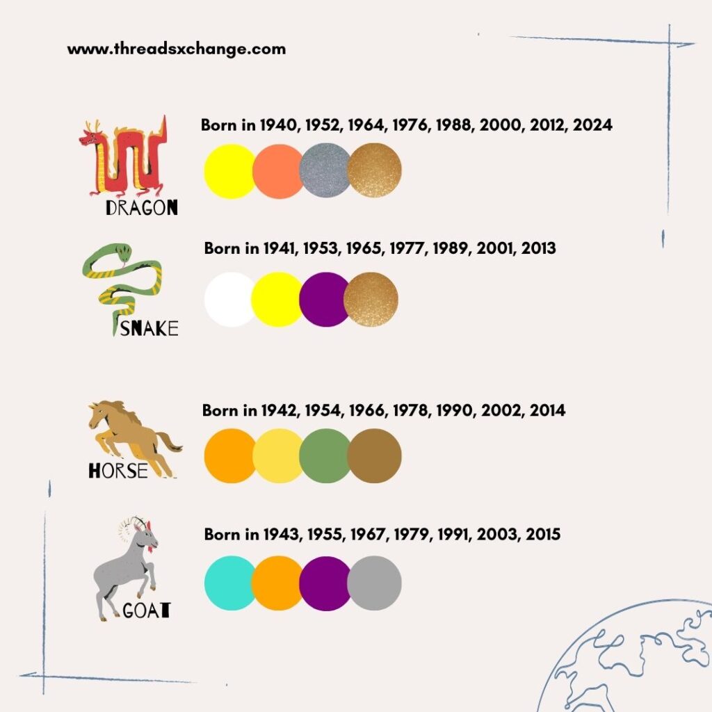 | Zodiac | Birth Year | Lucky Colours |
