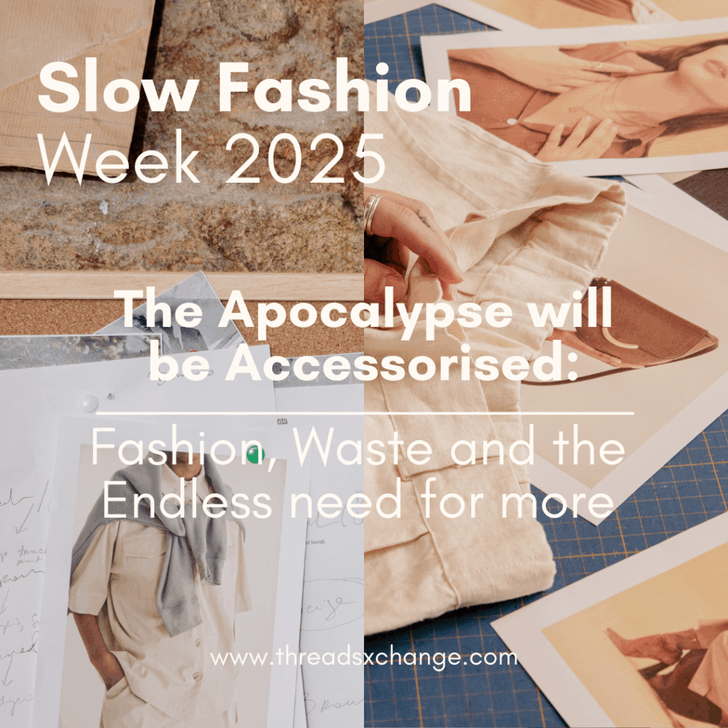 The title of the event., “The Apocalypse will be Accessorised: Fashion, Waste and the Endless need for more.”